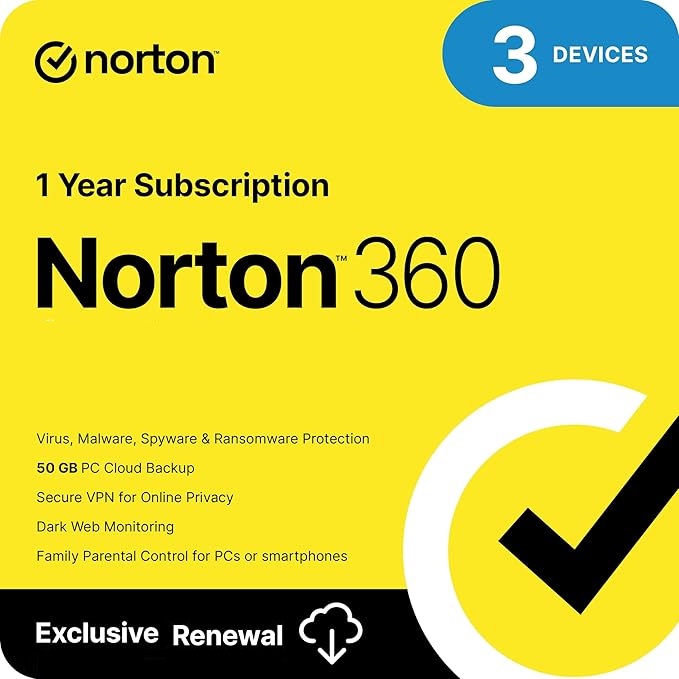 Norton 360 – for up to 3 Devices – gives you comprehensive virus, malware, ransomware protection for up to 3 PCs, Macs, Android or iOS devices, including 50GB of secure PC cloud backup and Secure VPN for your devices. Also included are additional features such as SafeCam that alerts you and blocks unauthorized access to your PC’s webcam, Password Manager, and Dark Web Monitoring,** where we monitor and notify you if we find your personal information on the dark web.